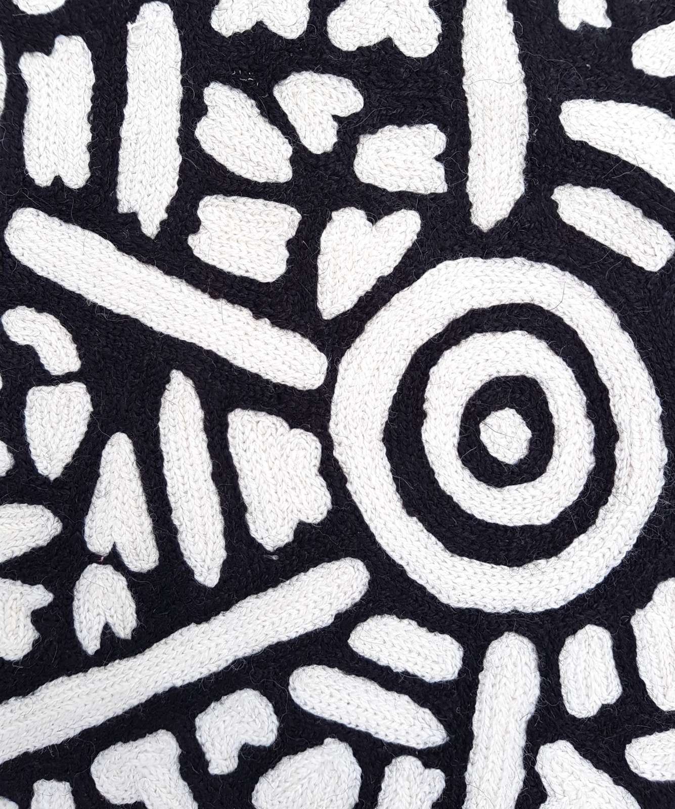 - All natural fibres – embroidered wool on cotton canvas