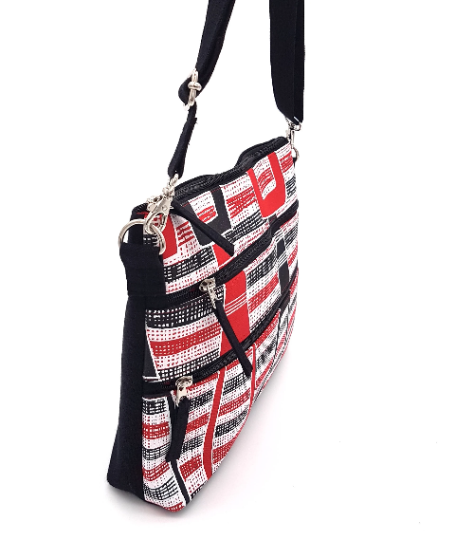 Each Charlotte Bag is handmade with love and care by the staff of Women for Women Foundation, so please note that every bag is unique, and the placement of the fabric design may be different on each item.