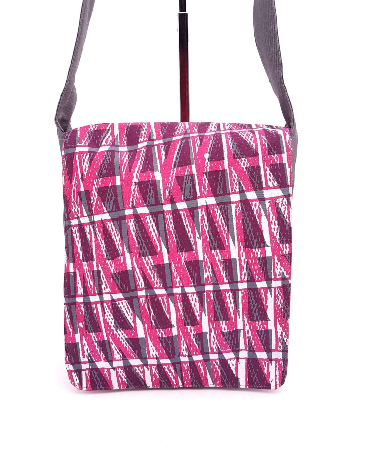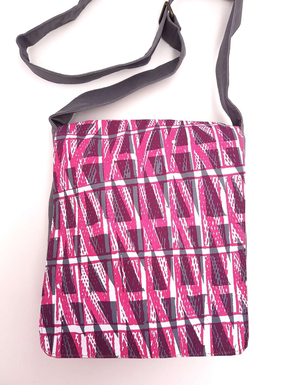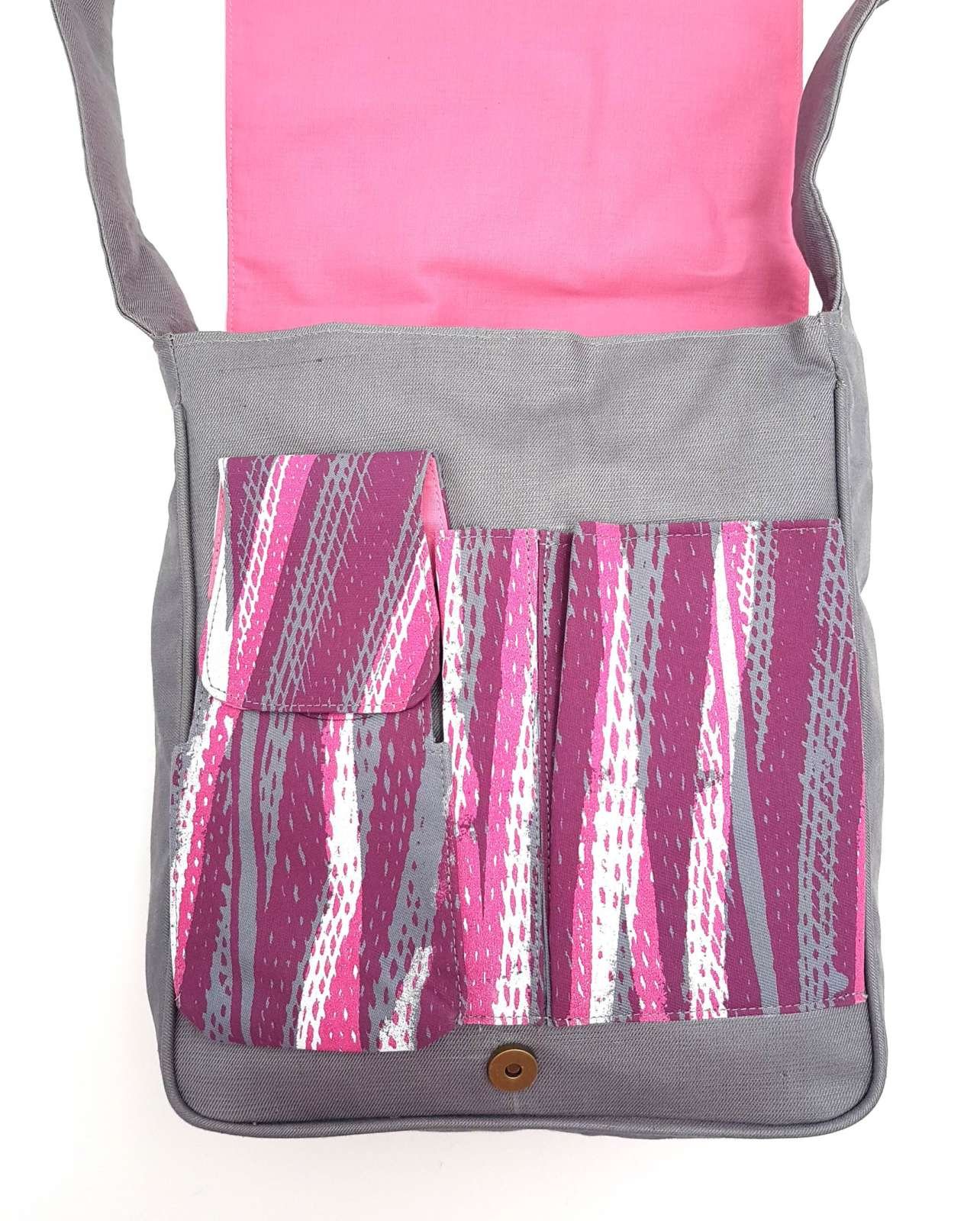 Fabric: Cotton drill feature fabric is grey and the inks are pink and white with a bright pink cotton lining.