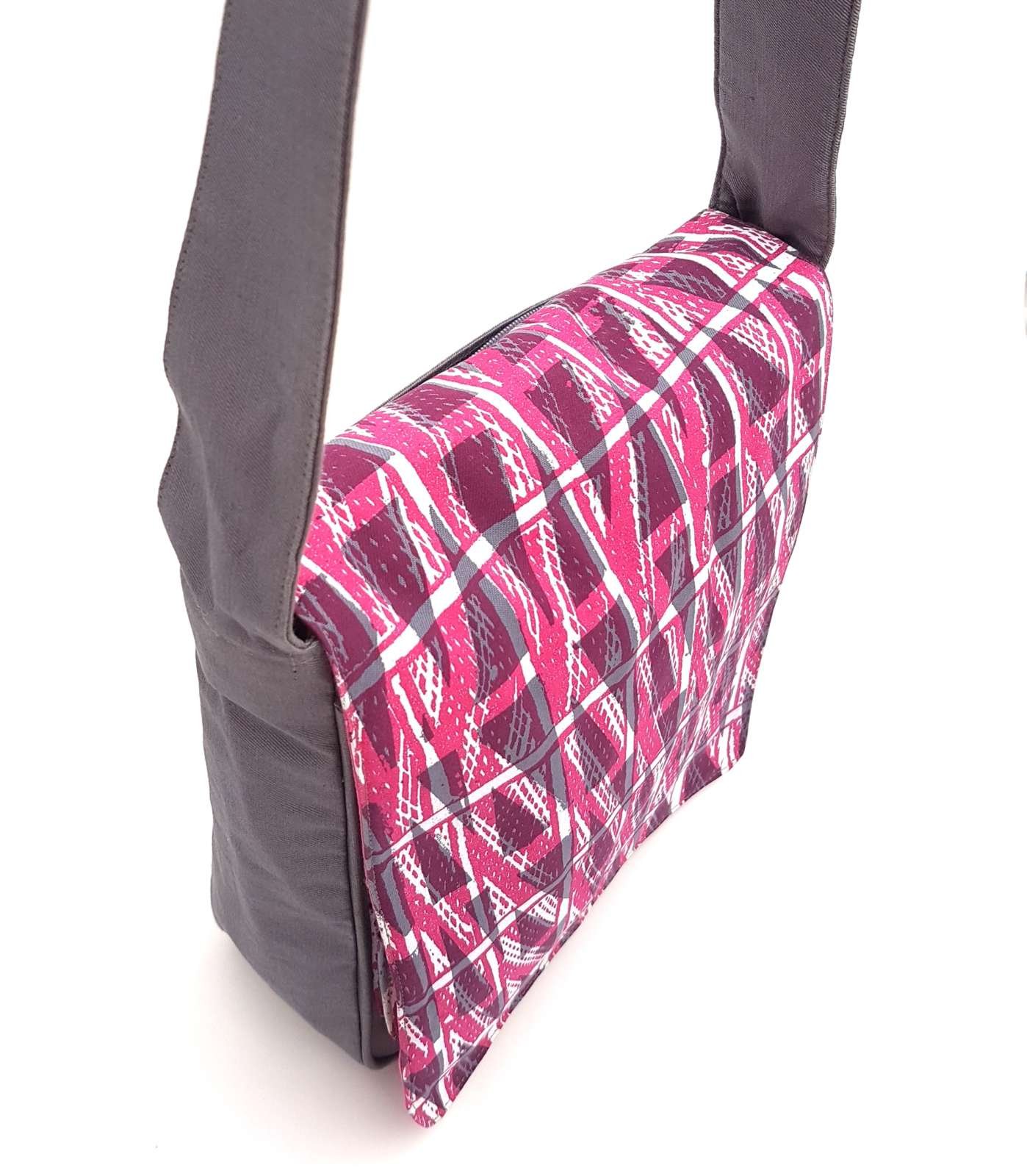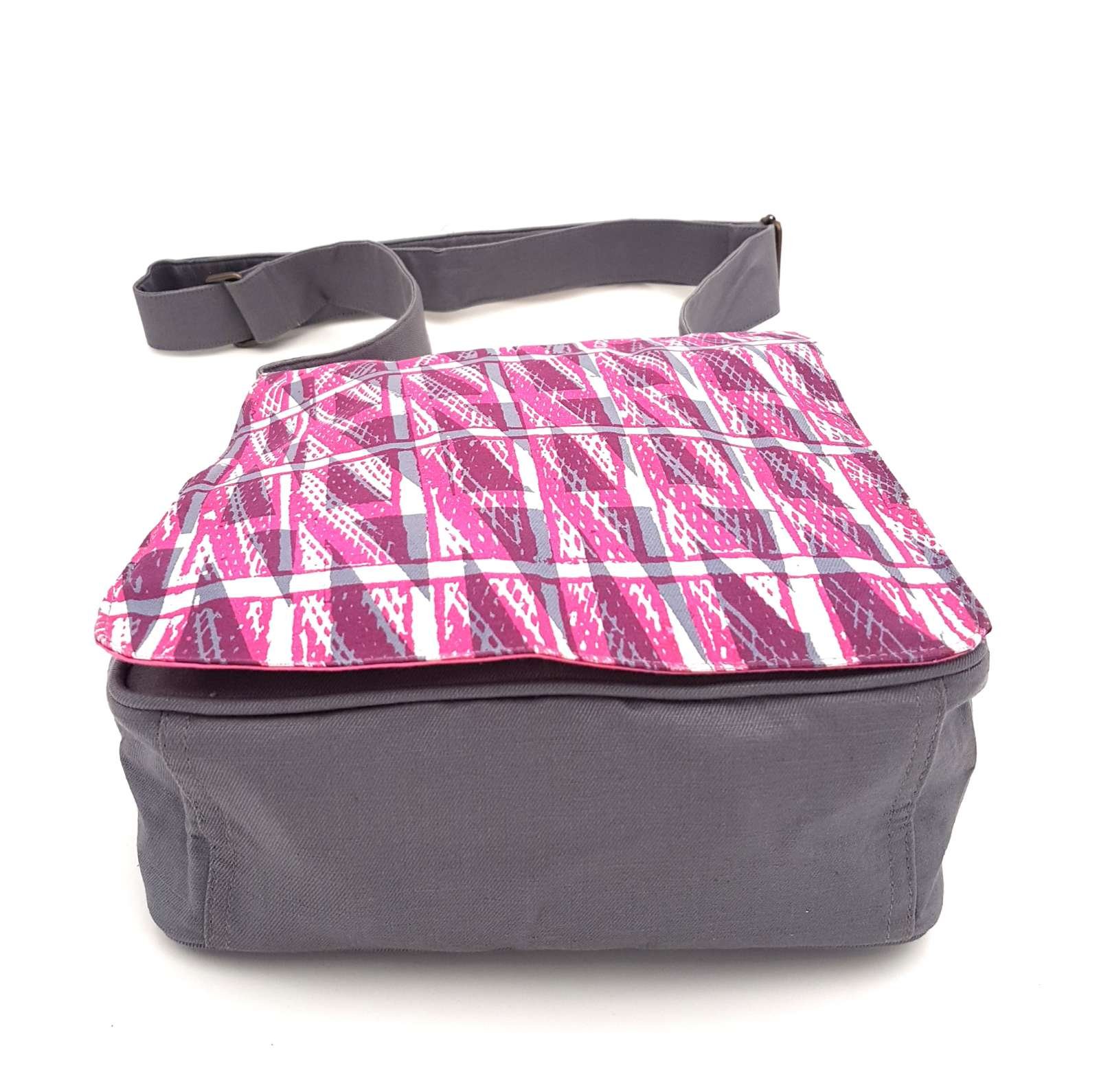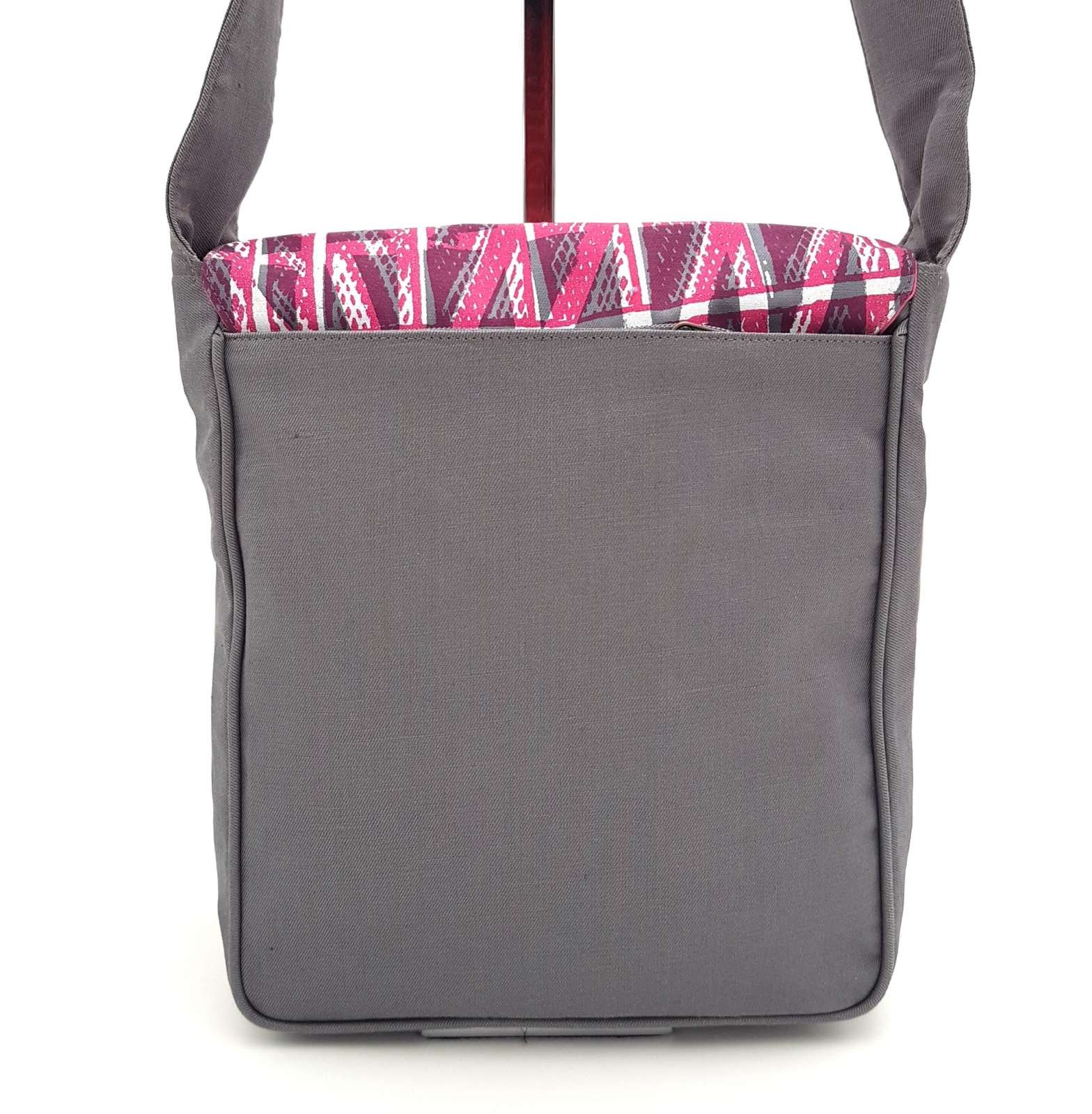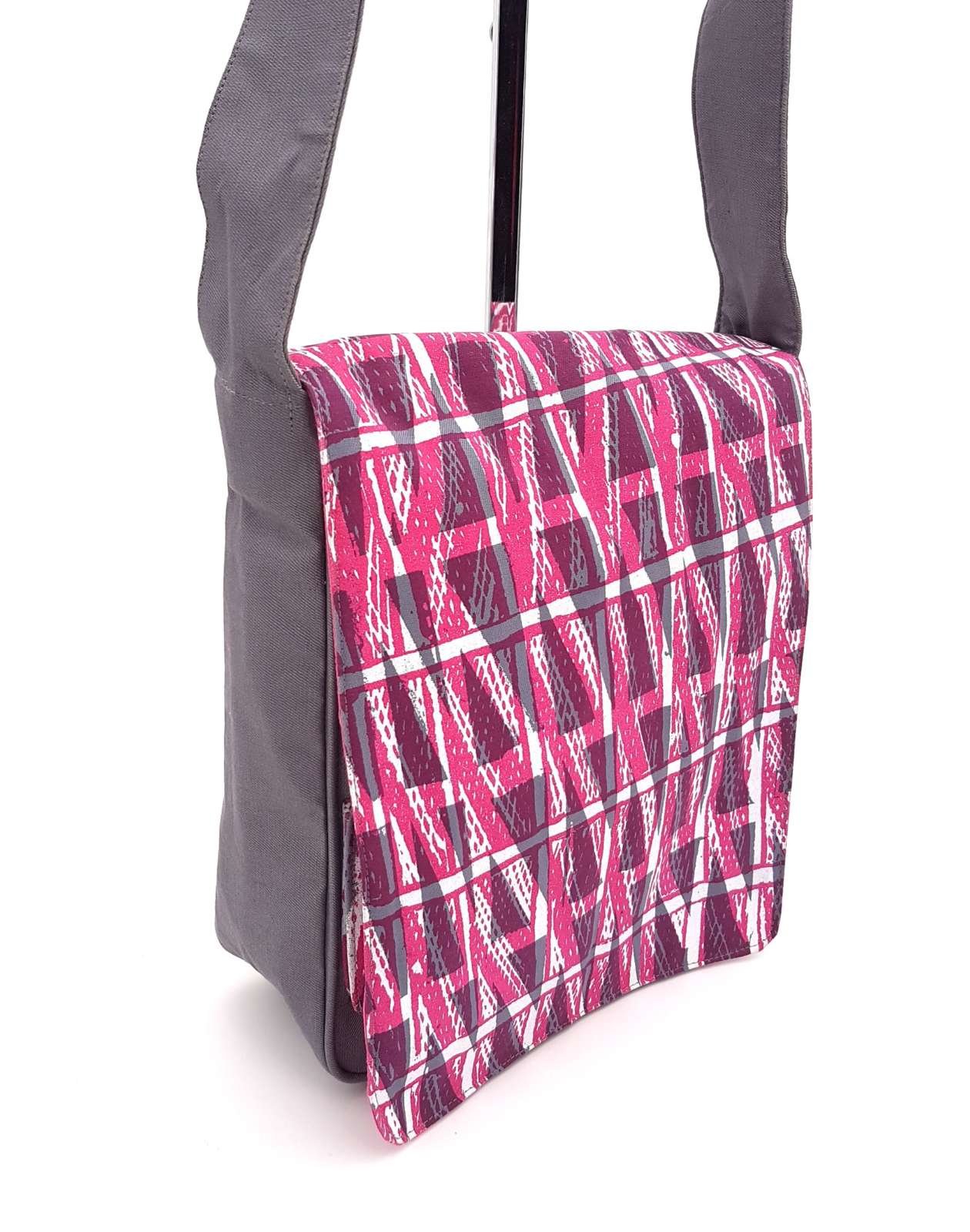 Fabric: Cotton drill feature fabric is grey and the inks are pink and white with a bright pink cotton lining.