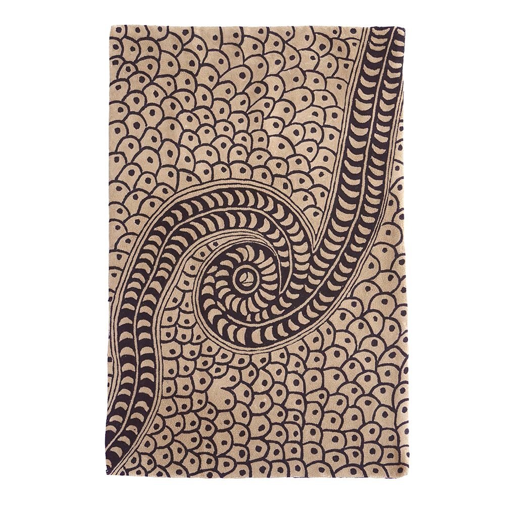 These beautiful, unique textiles are a cross-cultural collaboration combining Aboriginal designs and traditional Kashmiri rug-making techniques. Chain stitched, using hand dyed wool, each is a completely handmade piece. A more empowering way to work, this brings many direct benefits to the artists’ and their community. Control and ownership of intellectual property are also maintained. Purchase of these products guarantees a direct return to the Aboriginal artist and their community.
