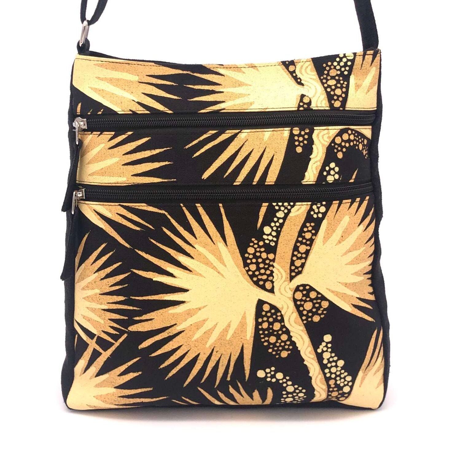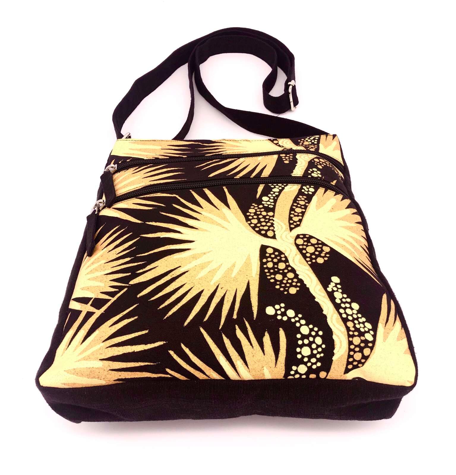 Flying Fox Fabrics is a social enterprise based in Darwin. Flying Fox Fabrics specialises in ethically value-adding to fabric which is designed by First Nations people by making accessories, clothing, and homewares. Flying Fox Fabrics products are made in partnership with fair trade organisations in Cambodia that train and employ disables artisans. Their work is highly skilled and showcases the First Nations fabrics with great respect.