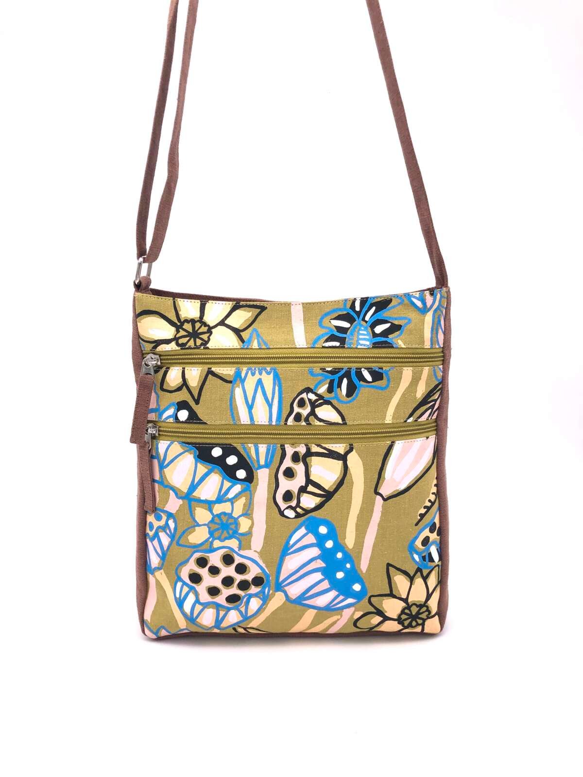 Our Delia bags are made by Women for Women, our partner foundation based in Cambodia. Women for Women prides itself in providing opportunities and skills that empower Cambodian women and girls to be leaders in their community. Each Delia Bag is handmade with love and care by the women of Women for Women, so please note that every bag is unique, and the placement of the fabric design is different on each item.