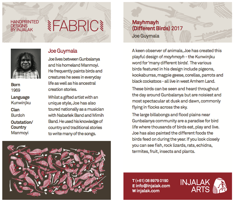 Visit the Injalak Arts Etsy shop to see an amazing range of fabrics and other high quality authentic hand-made products: https://www.etsy.com/au/shop/InjalakArts