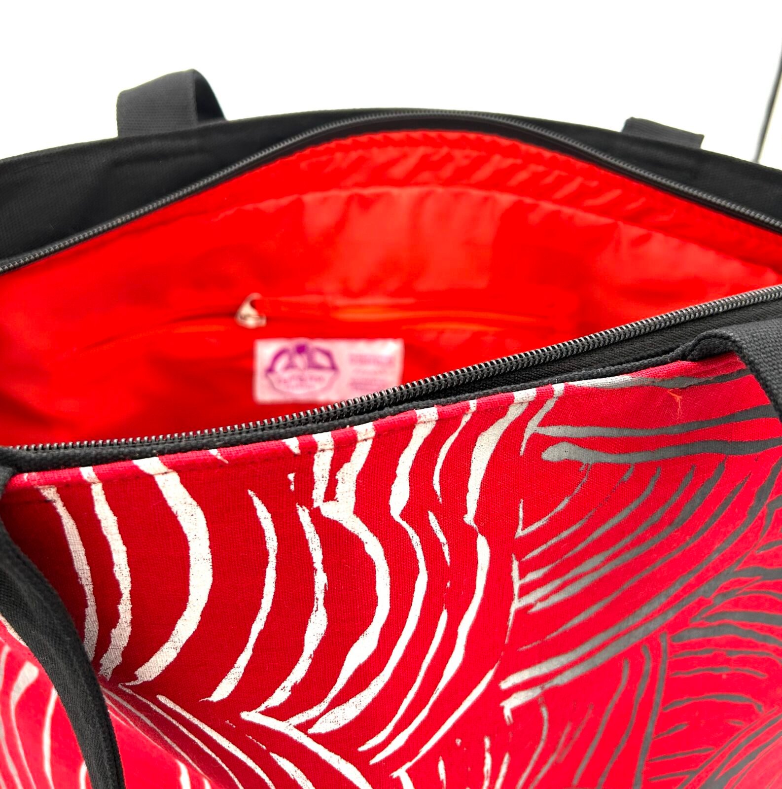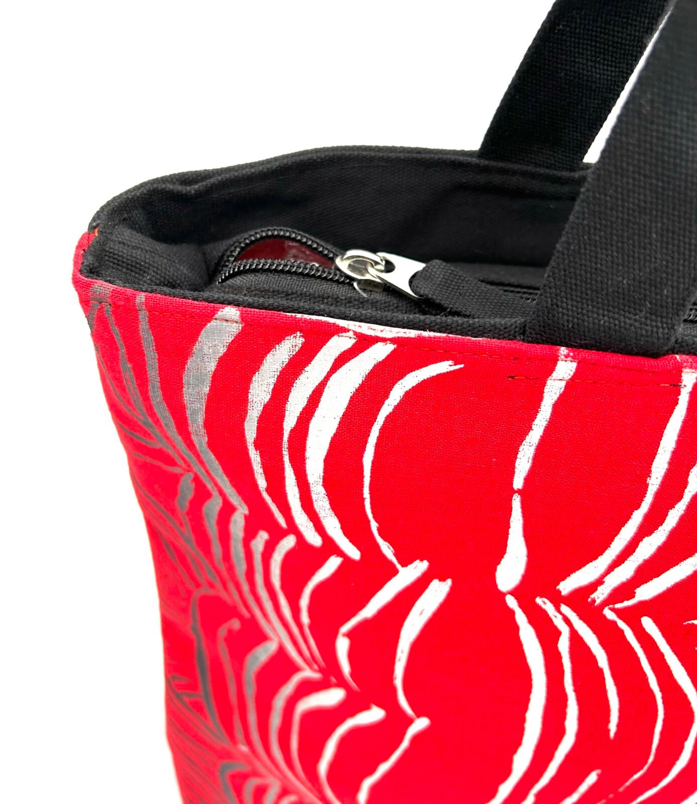Fabric and color: the base cloth of the printed fabric is red linen/cotton and the ink is black, white, grey ombre. The lining fabric is as shown.