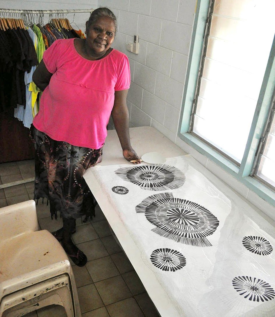 Marita Sambono is a member of Merrepen Arts, an Aboriginal owned art centre in Daly River in the Northern Territory of Australia.