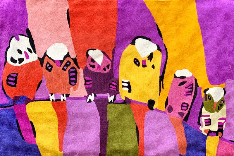 These beautiful, unique textiles are a cross-cultural collaboration combining Aboriginal designs and traditional Kashmiri rug-making techniques. Chain stitched, using hand dyed wool, each is a completely handmade piece. A more empowering way to work, this brings many direct benefits to the artists’ and their community. Control and ownership of intellectual property are also maintained. Purchase of these products guarantees a direct return to the Aboriginal artist and their community.