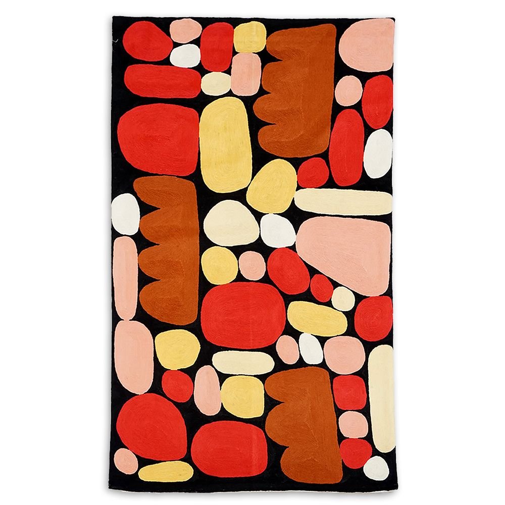 These beautiful, unique textiles are a cross-cultural collaboration combining Aboriginal designs and traditional Kashmiri rug-making techniques. Chain stitched, using hand dyed wool, each is a completely handmade piece. A more empowering way to work, this brings many direct benefits to the artists’ and their community. Control and ownership of intellectual property are also maintained. Purchase of these products guarantees a direct return to the Aboriginal artist and their community.