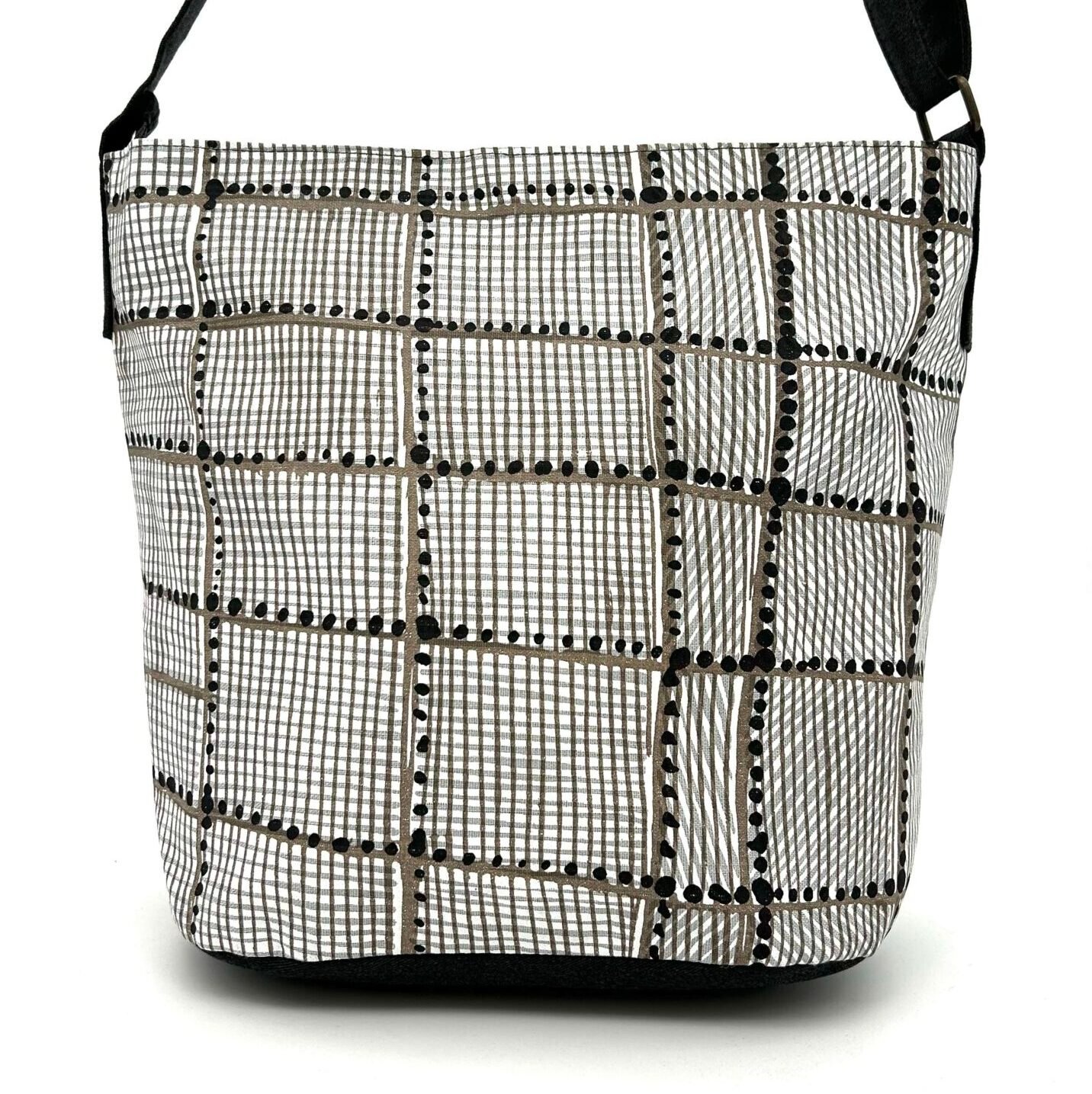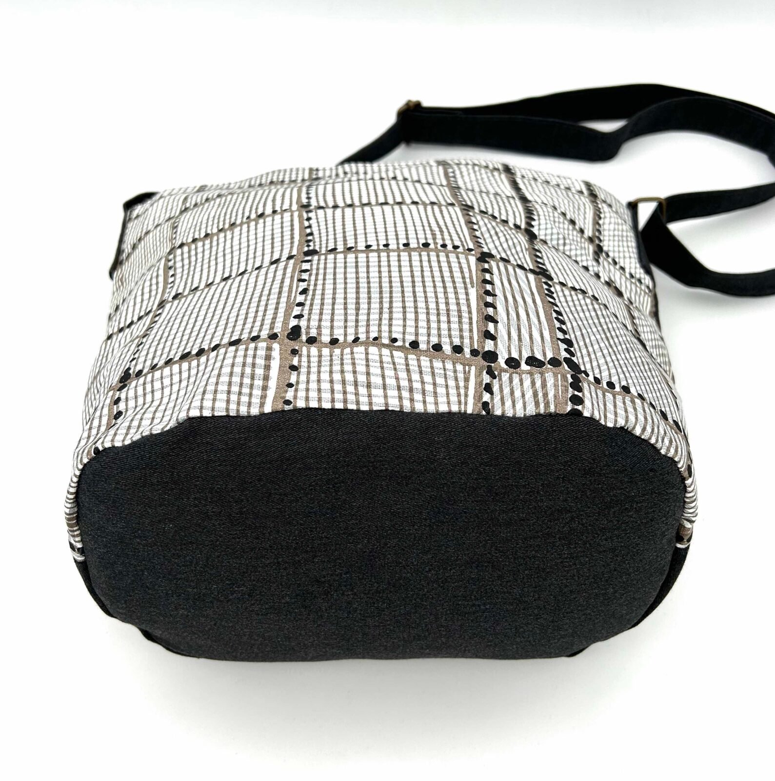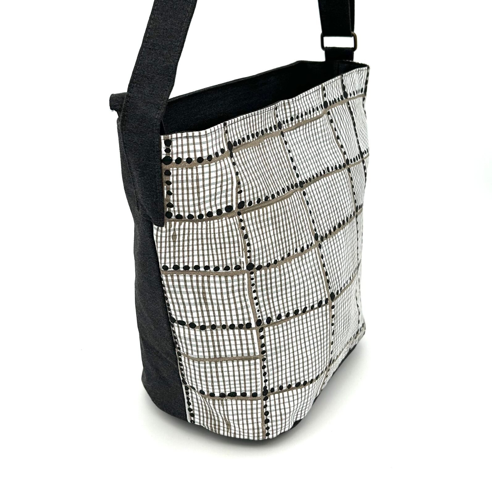 Colours: The base cloth is sand and the inks are black and white. The complementary fabric is dark grey.