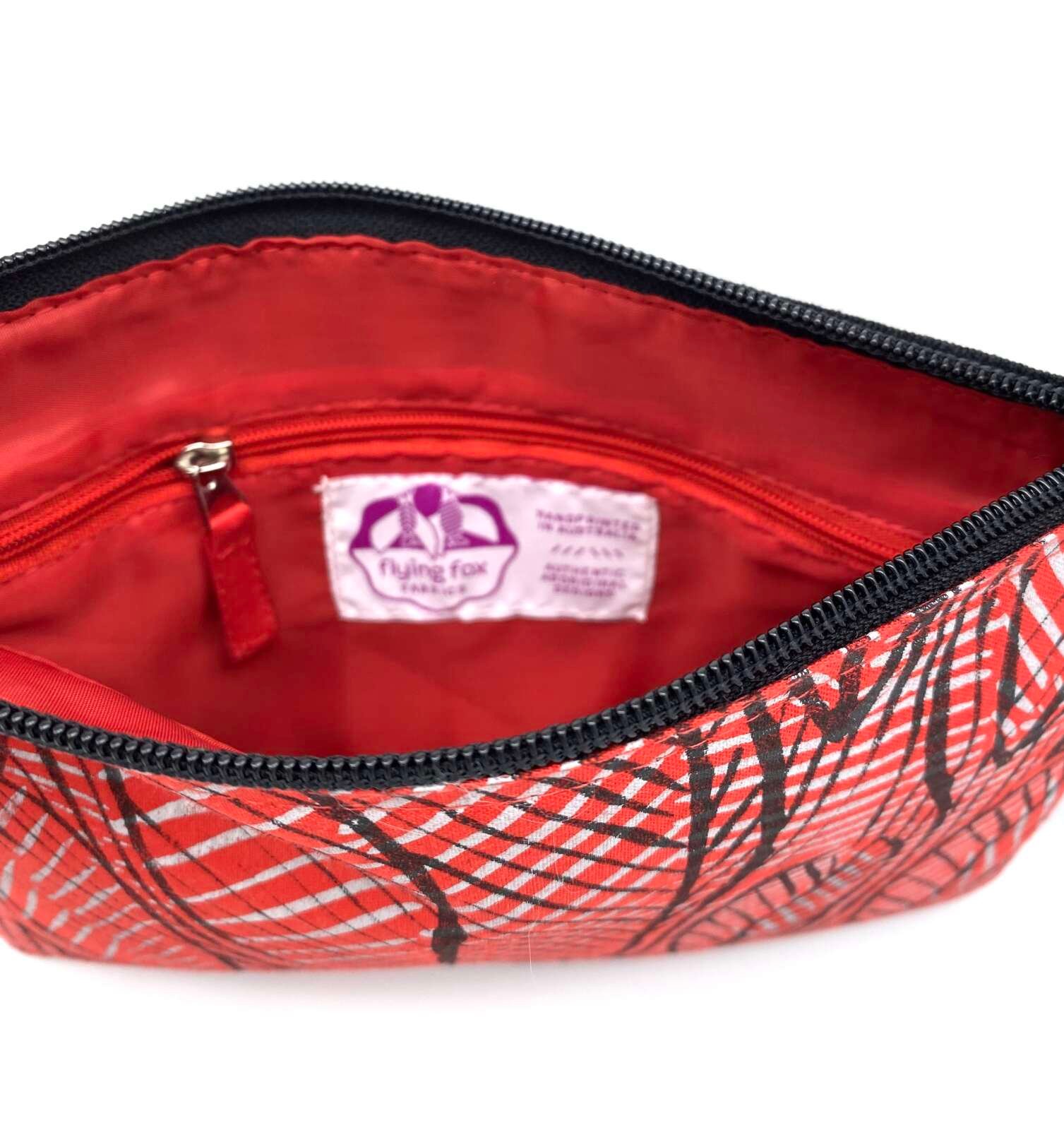 A gorgeous little clutch purse that is slim, elegant and a delight to hold. It’s big enough to hold all your essentials (phone, cards, keys, wallet) and small enough to put inside a larger bag like a tote or backpack to keep things organised. Its holds its shape but is not rigid. Can also be used as a large pencil case, make up purse etc.