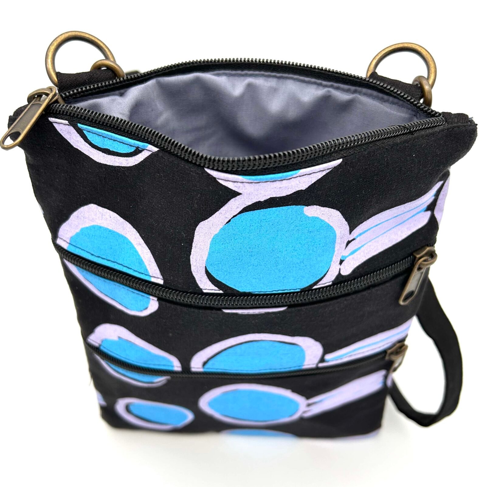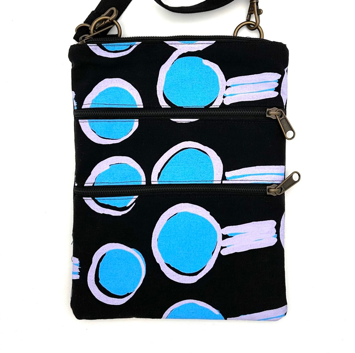 Sweet, lightweight and very handy bag that can be worn off the shoulder or cross body. She’s big enough to hold everything you need such as phone, purse/wallet, keys and more.