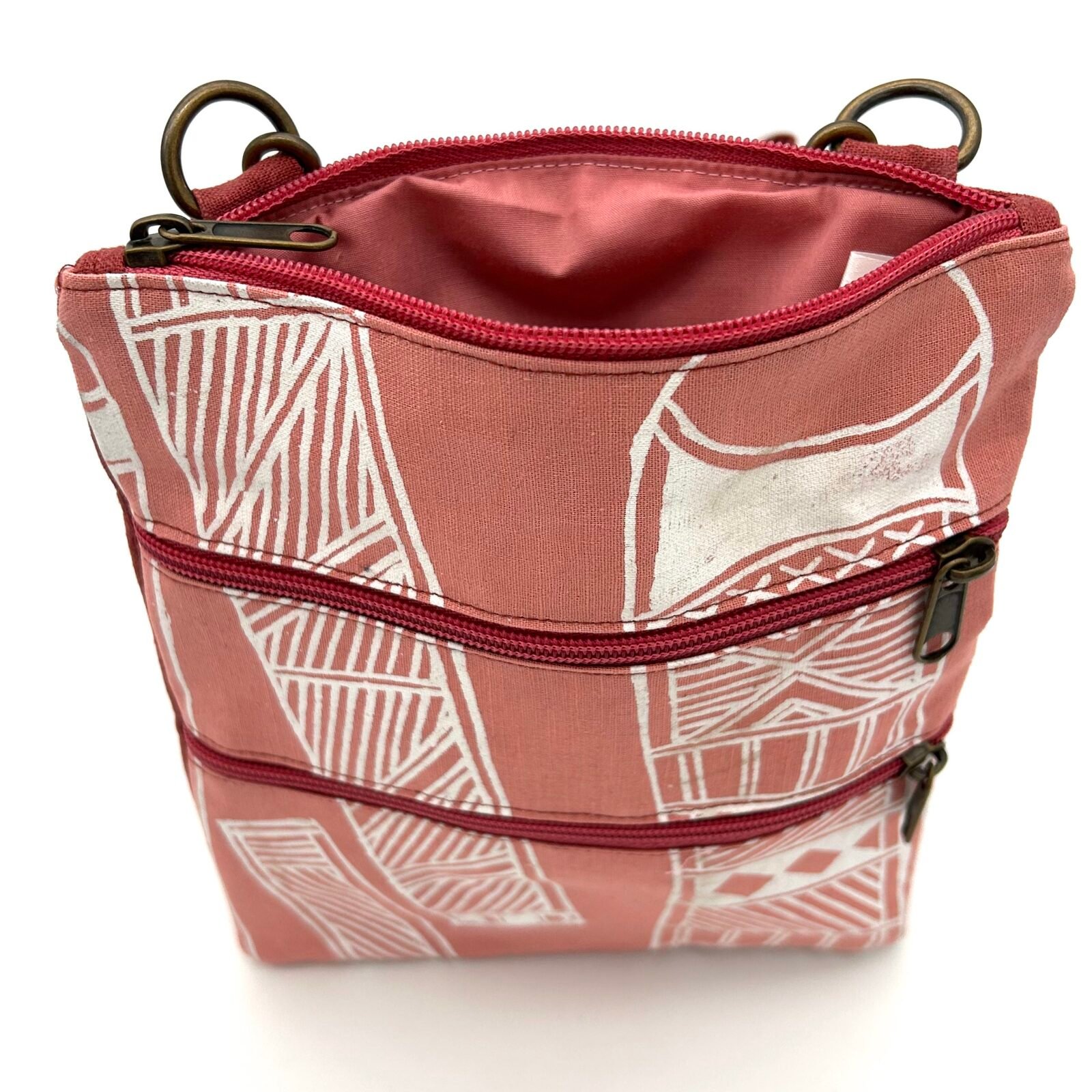 Please note that each bag is unique and the placement of the fabric design is different and wonderful on each item.