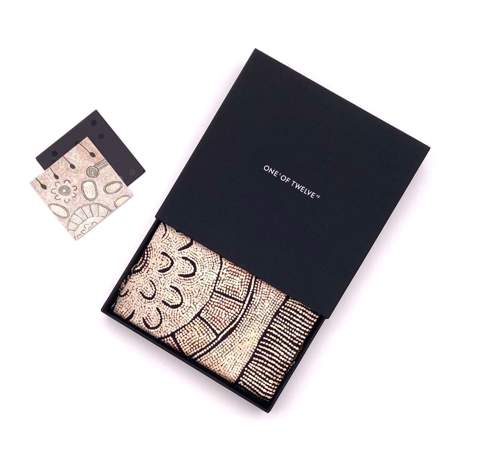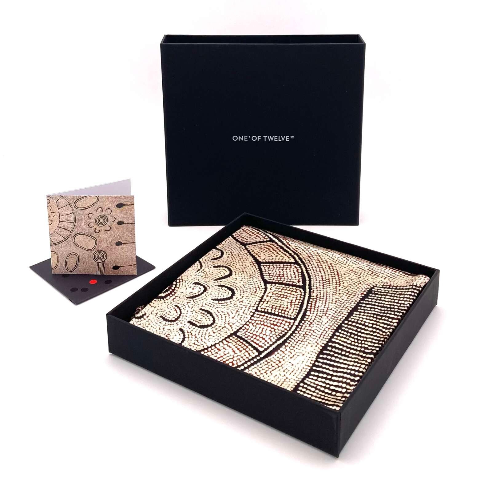 Manufactured by One of Twelve – an Australian company that showcases the work of emerging and established artists from the Asia Pacific region. We are dedicated to celebrating and contributing to the art sector of this region through the production of high quality, silk garments that depict collaborating artists work.