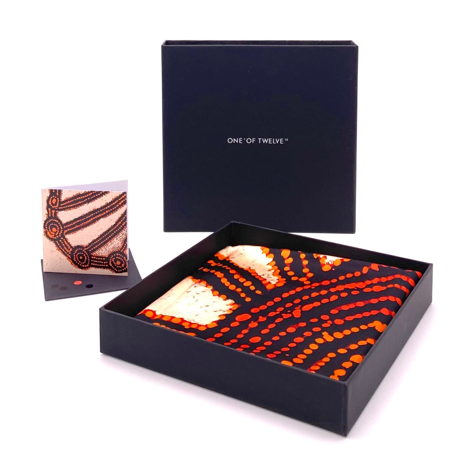 Our scarves come in a beautiful gift box and include an Artist’s card detailing the artwork meaning.